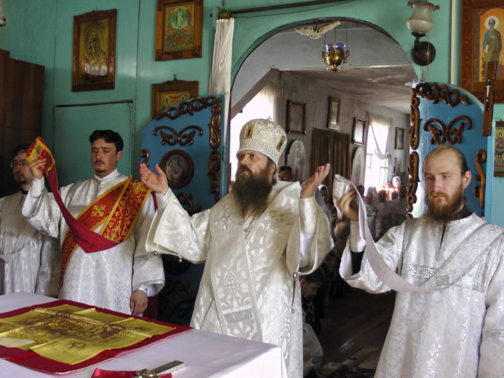 За Божественной литургией Его Преосвященству сослужили исполняющий обязанности наместника Томского Богородице-Алексиевского монастыря иеромонах Кирилл (Умрилов), духовенство г. Колпашево и с. Тогур.