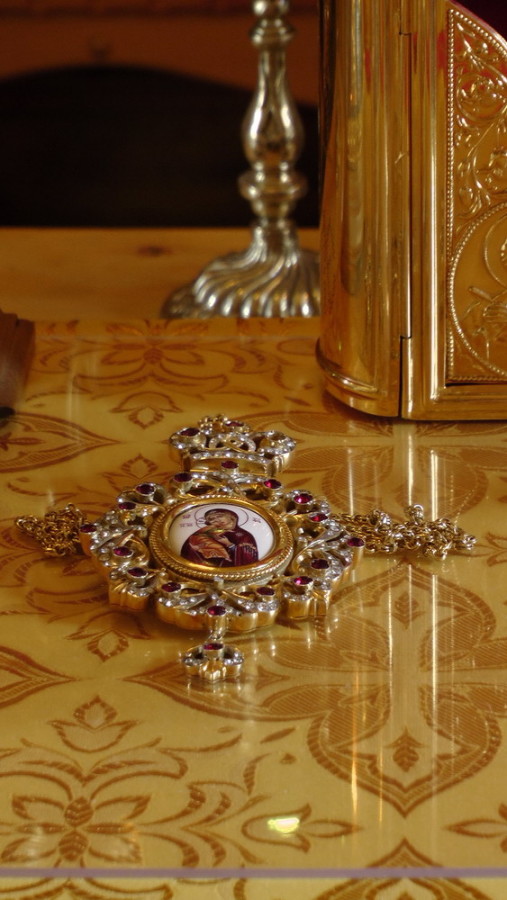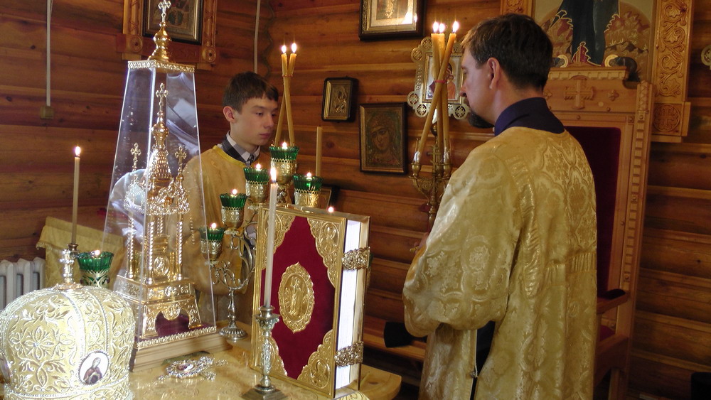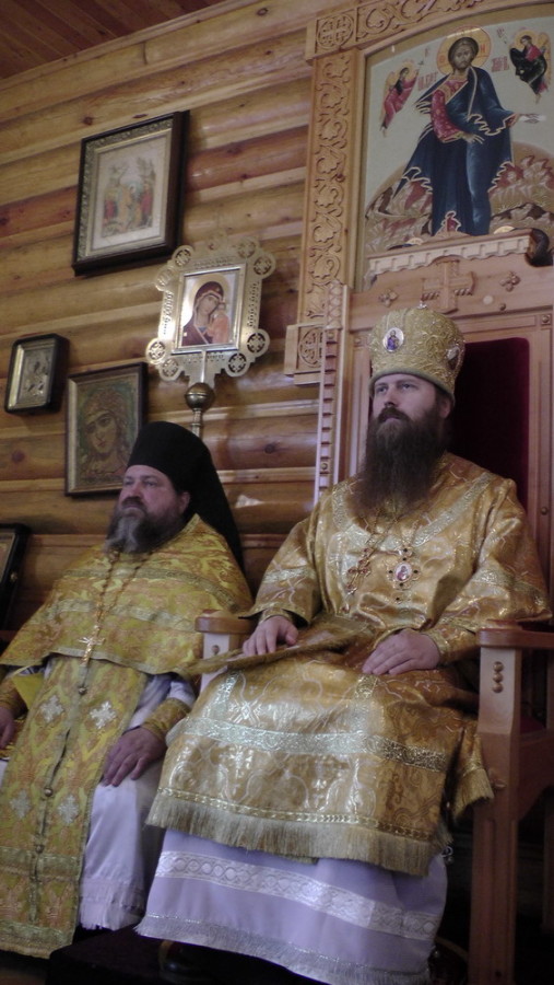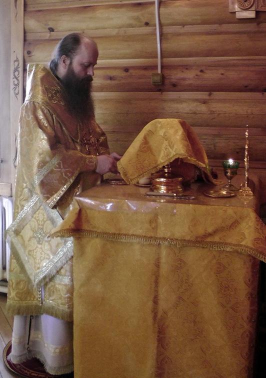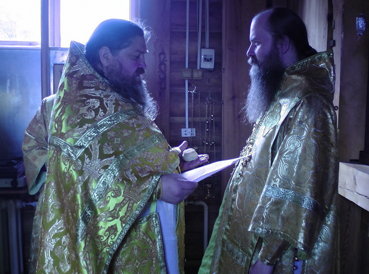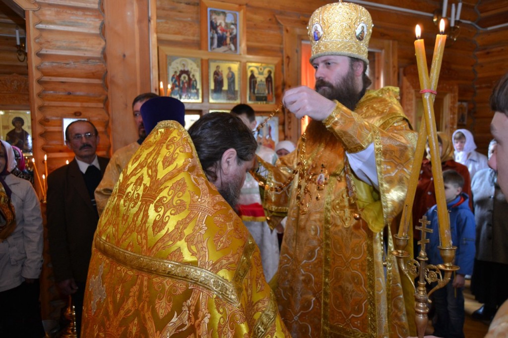 На малом входе епископ Силуан за усердное служение Церкви наградил иеромонаха Никиту (Зверева) наперсным крестом.