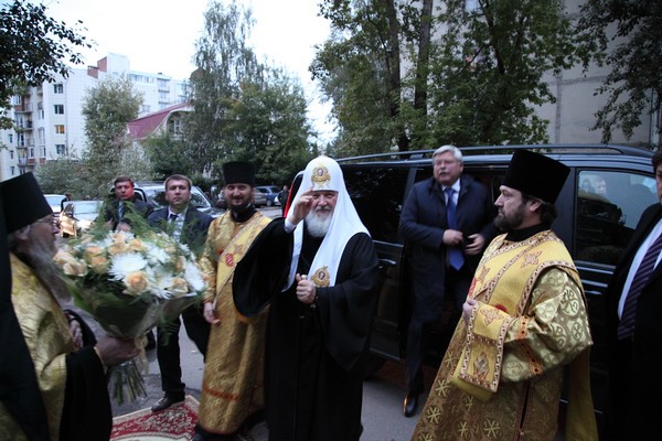 Святейший Патриарх Кирилл обратился к собравшимся с Первосвятительским словом и передал в дар храму икону святого равноапостольного князя Владимира. Всем присутствующим были розданы иконки Спаса Нерукотворного с Патриаршим благословением.