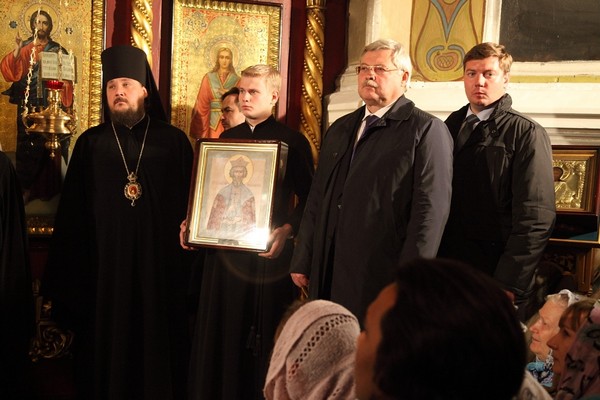 В храме присутствовали управляющий делами Московской Патриархии митрополит Саранский и Мордовский Варсонофий, руководитель Административного секретариата Московской Патриархии епископ Солнечногорский Сергий, епископ Колпашевский и Стрежевской Силуан, председатель Синодального информационного отдела В.Р. Легойда, а также губернатор Томской области С.А. Жвачкин и другие представители местных властей.