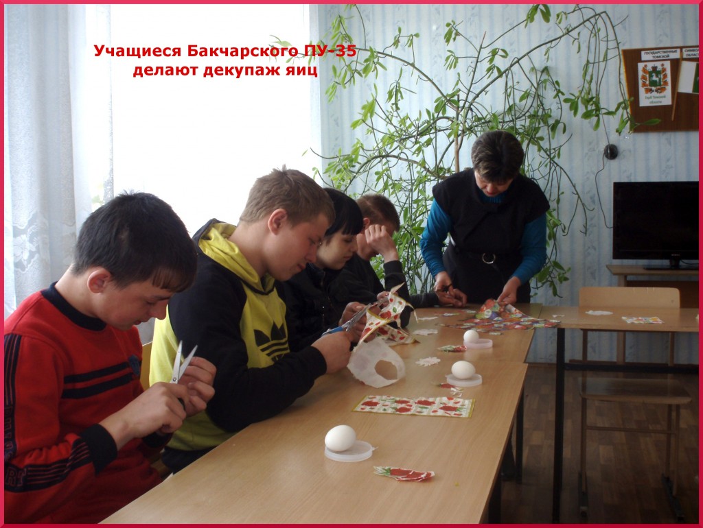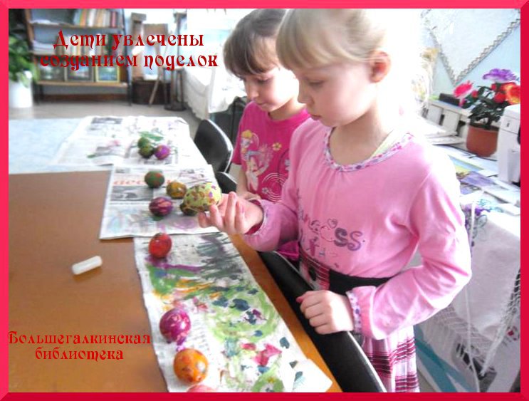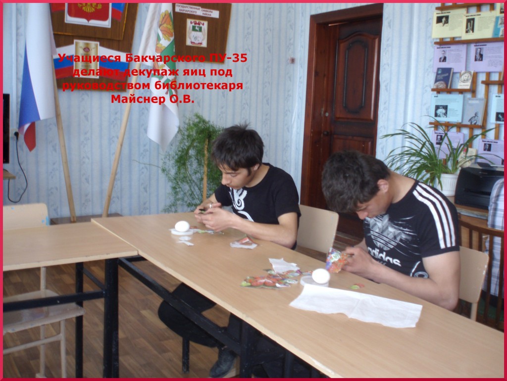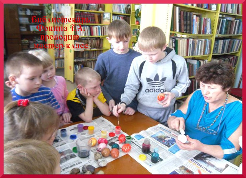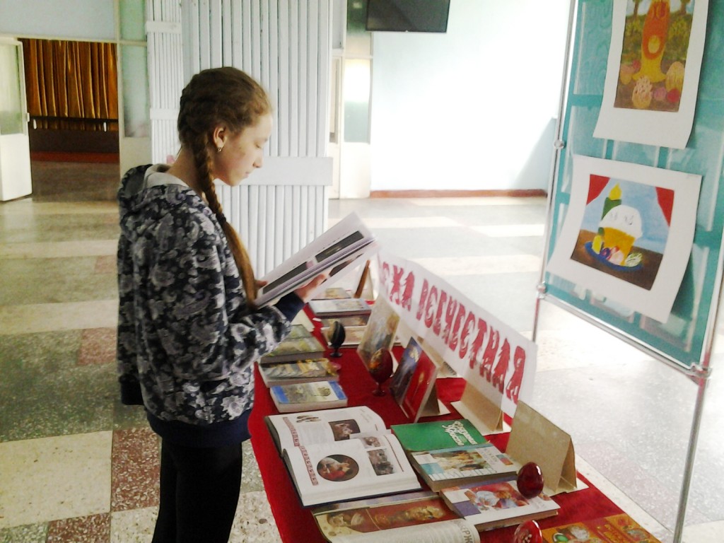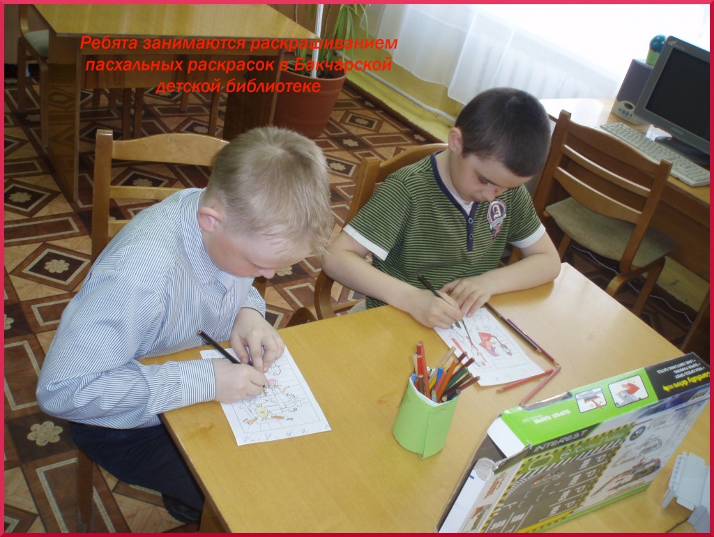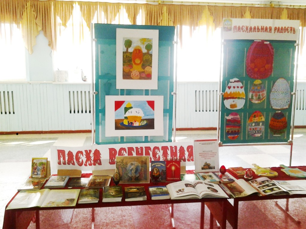 В Бакчарской центральной районной библиотеке состоялась презентация выставки «Пасха всечестная». Экспозиция украшена писанками, яйцами, декорированными вышивкой и другими поделками образцового объединения «Мир игрушки» Бакчарского Центра дополнительного образования для детей, а также рисунками и сувенирами учащихся художественного отделения Бакчарской детской художественной школы искусств. В течение всей Светлой седмицы в помещении библиотеки проводились мероприятии, посвященные празднованию Пасхи. Для читателей по выставке проводились обзоры, беседы, которые раскрывают суть Праздника праздников: прославление Светлого Христова Воскресения. В течение апреля библиотекари организовывали мастер-классы по изготовлению пасхальных сувениров.