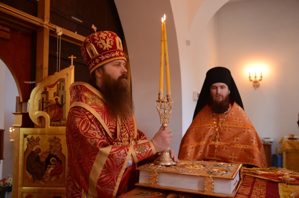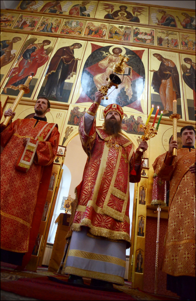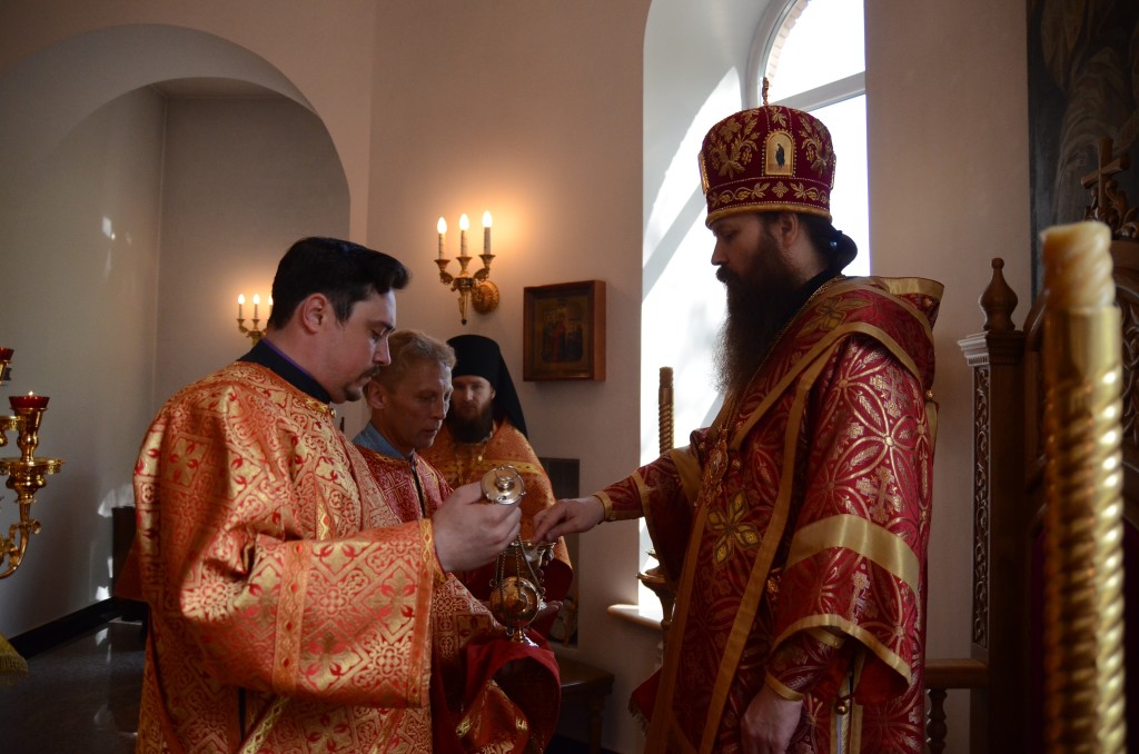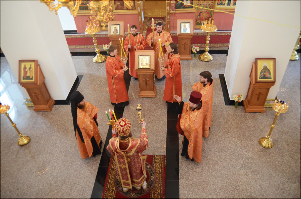 Его Преосвященству сослужили клирики Вознесенского собора.