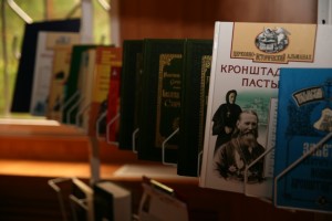 По благословению настоятеля игумена Стефана (Баранникова) выставку оформила библиотекарь Приходской библиотеки А.М. Лапина.