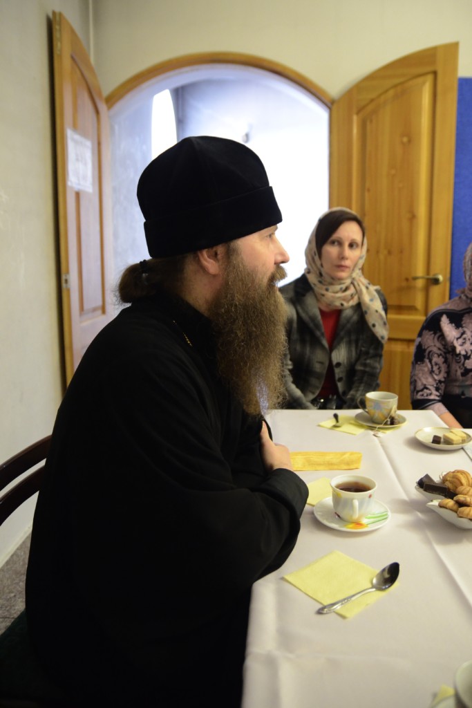 В Вознесенском соборе епископ Колпашевский и Стрежевской Силуан провел для учителей экскурсию, во время которой подробно рассказал о символике высокого иконостаса. Общение продолжилось в классе воскресной школы за чашкой чая, где участники встречи смогли задать архипастырю вопросы.