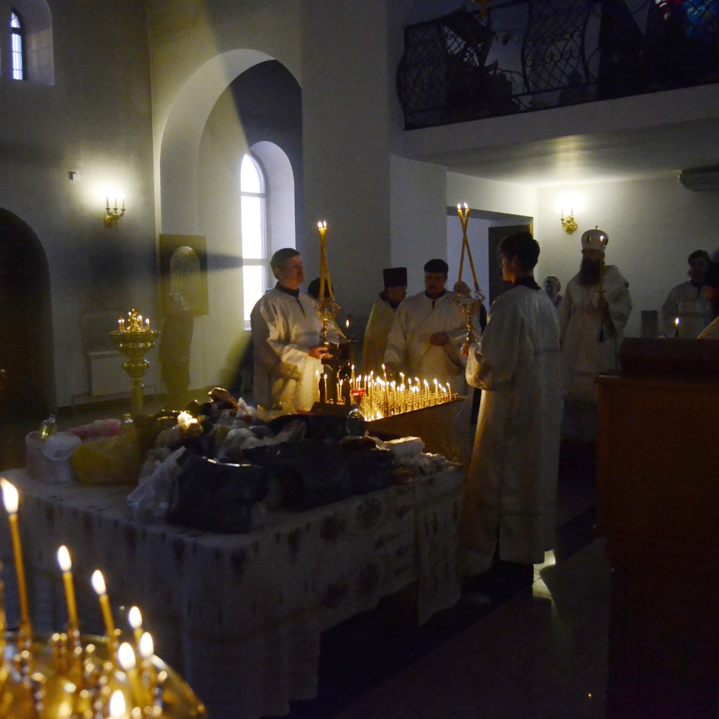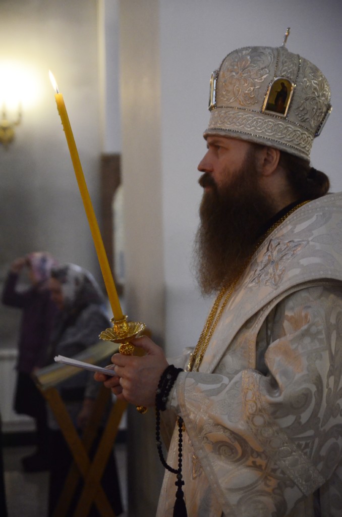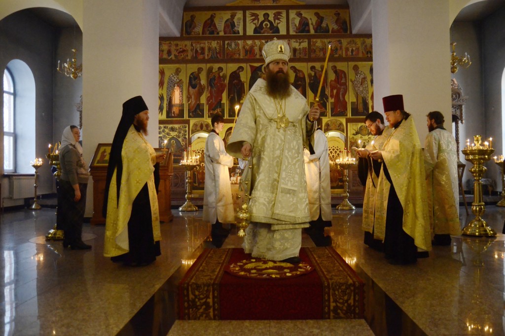 В мясопустную родительскую субботу епископ Силуан совершил вечернее богослужение и Божественную литургию в Вознесенском кафедральном соборе.