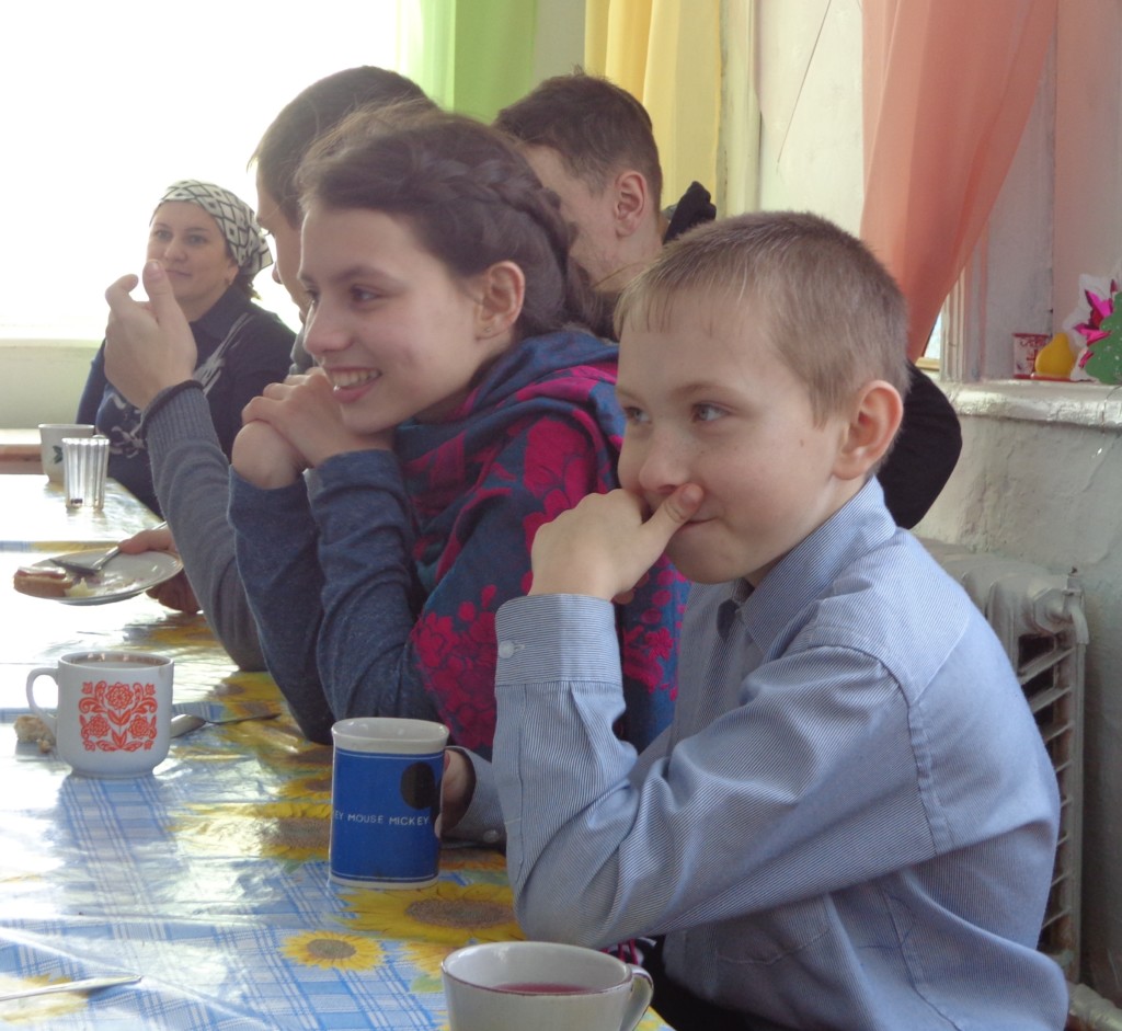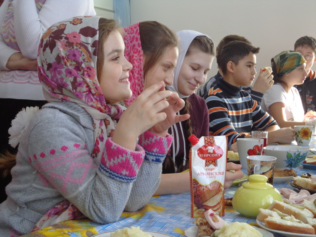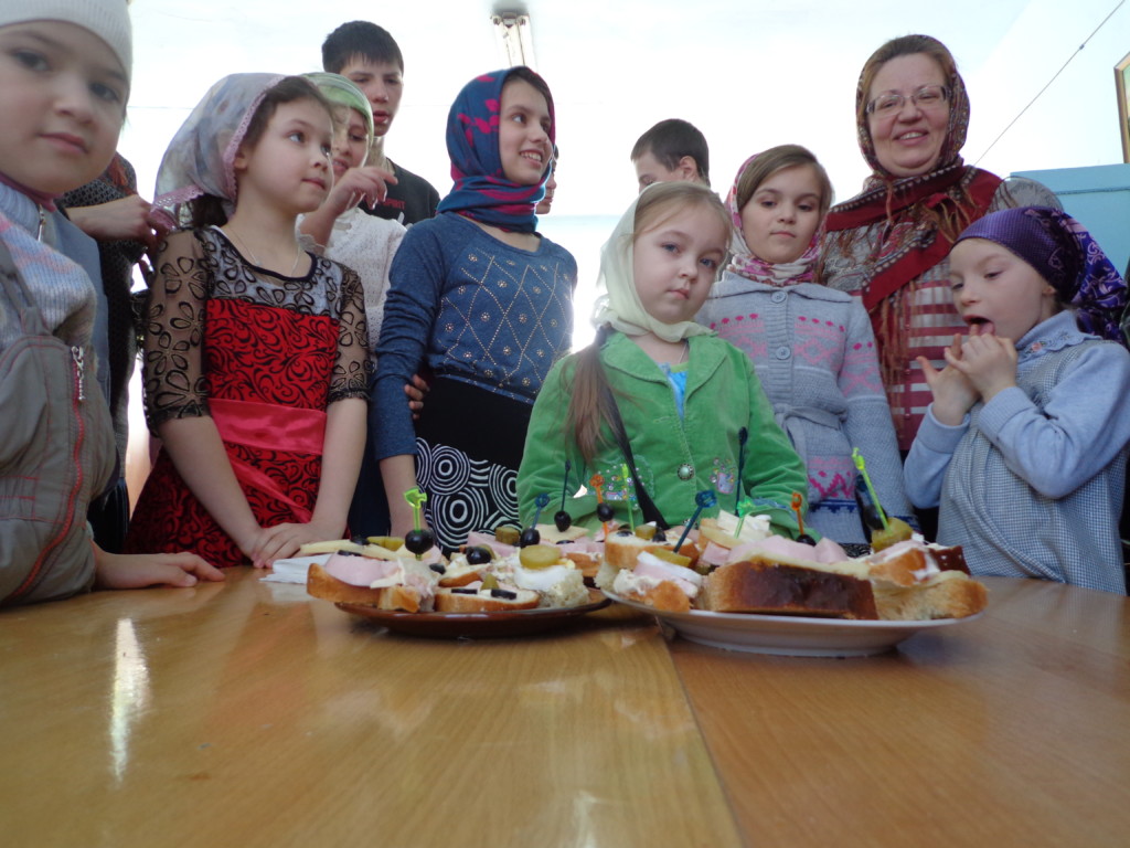 После богослужения начался квест, состоящий из нескольких этапов. Для начала ребятам нужно было разделиться на команды, познакомиться, посостязаться в кулинарном мастерстве, показать знания Священного Писания.