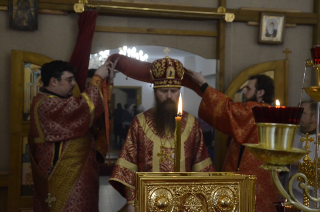 Преосвященному владыке сослужили ключарь Вознесенского собора иерей Алексей Коновалов, иерей Максим Демидович, диакон Сергий Баянов, диакон Георгий Полевщиков, диакон Виктор Баев.