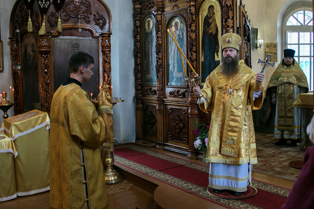 Его Преосвященству сослужили секретарь Колпашевского епархиального управления иеромонах Симеон (Койнов), ключарь Свято-Воскресенской церкви иерей Алексей Постников, диакон Георгий Полевщиков. За богослужением пел хор под управлением регента К.Тарабриной.