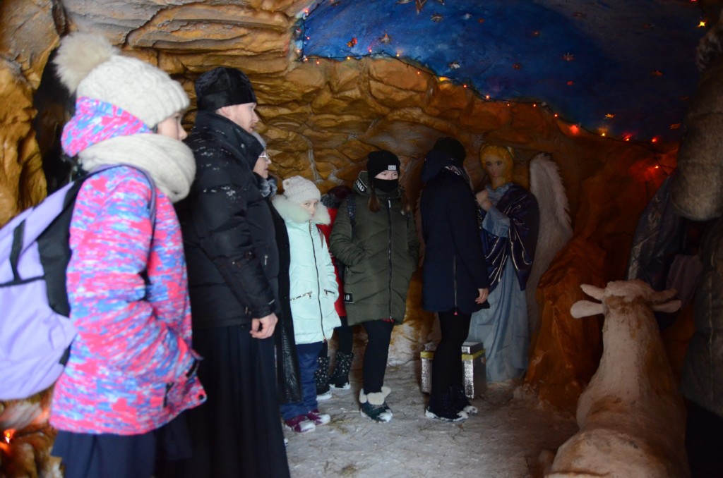 В холле Духовно-просветительского центра разместилась выставка, составленная по итогам конкурса, с которой ребята смогли ознакомиться. После награждения юным художникам и их педагогам отец Алексей показал снежный вертеп, расположенный на территории собора.