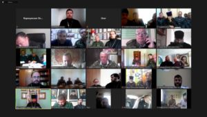 Возглавил мероприятие ответственный секретарь Синодального комитета иерей Тимофей Чайкин. Всего участвовало около 70 человек из 17 епархий. От Колпашевской епархии в вебинаре на тему: «Развитие взаимодействия Церкви и казачества на территории Сибирского казачьего войска» принял участие ответственный за взаимодействие с казачеством протоиерей Александр Фрейдман. С докладами и отчётами выступали, в частности, казачьи духовники и заместители атаманов Омского, Кемеровского, Обского-Полярного, Обь-Иртышского, Алтайского отдельских казачьих обществ. Общение получилось очень конструктивным и полезным.
