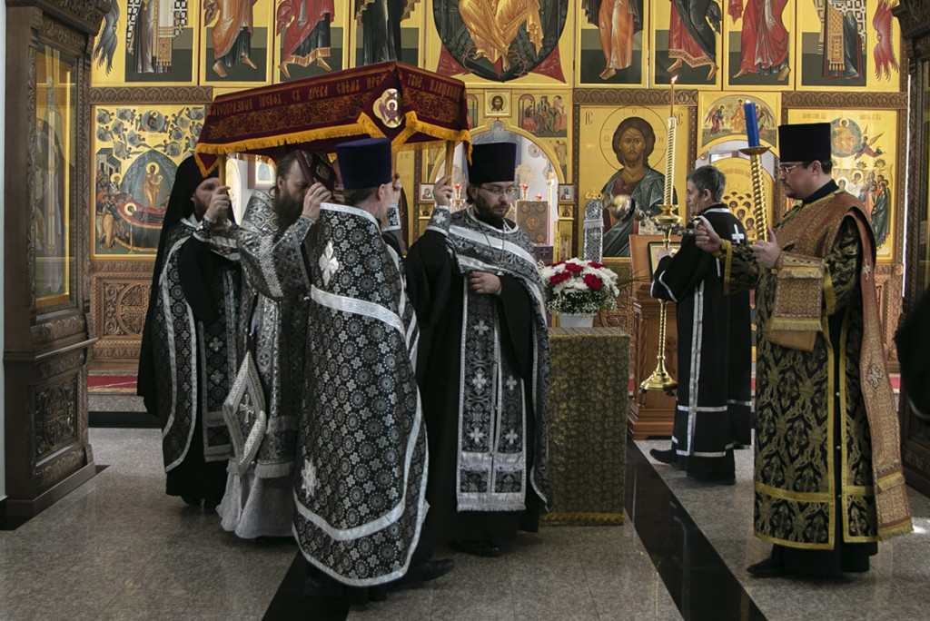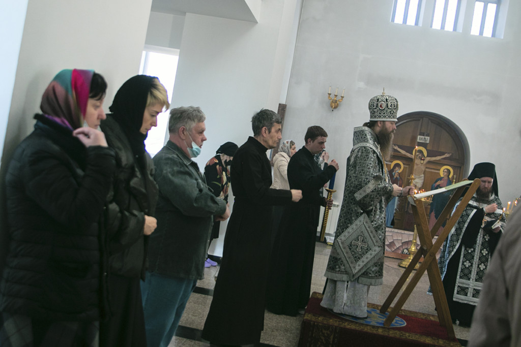 «Пасха Крестная» — так именуется пятница Страстной седмицы, посвященная воспоминанию Крестного подвига Спасителя мира: Его осуждения, поругания, страданий и мученической смерти на кресте, добровольно принятой Господом ради спасения Своего творения — человека. В этот день епископ Колпашевский и Стрежевской Силуан в Вознесенском соборе епархиального центра совершил Великую вечерню с Выносом Плащаницы. А вечером архипастырь возглавил утреню Великой субботы с чинопоследованием погребения Спасителя. Его Преосвященству сослужило духовенство кафедрального храма.