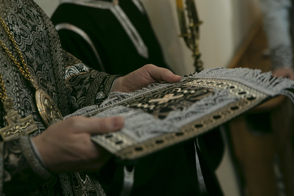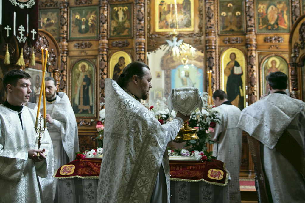 На Малом входе иерей Алексий Постников был удостоен патриаршей награды — права ношения палицы.