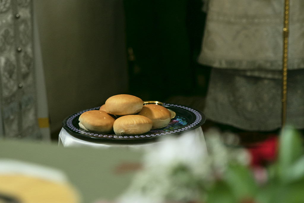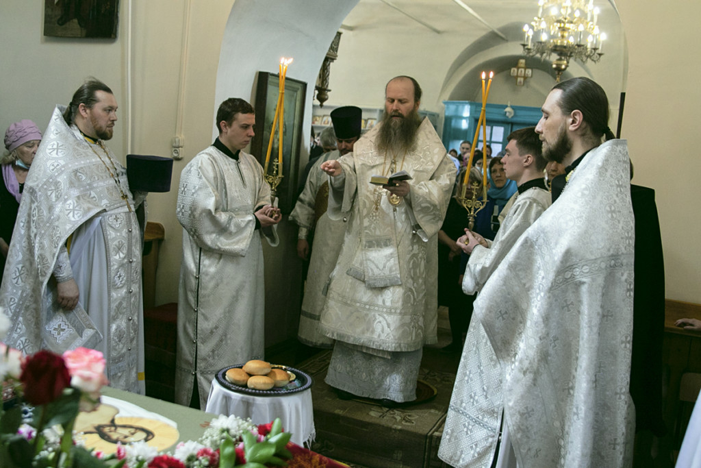 По завершении Литургии была прочитана молитва на освящение пасхальных снедей.