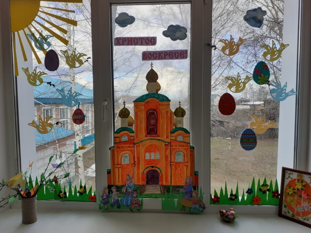 Окна к Пасхе украсили в Детско-юношеском центре г. Колпашево и в Колпашевском кадетском корпусе.