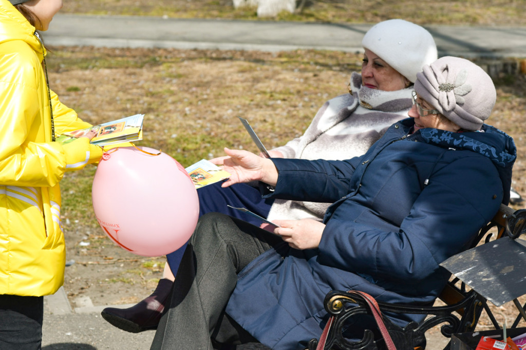 В с.Парабель силами миссионерского и молодёжного приходских отделов была организована праздничная акция. Группа молодых прихожан и воспитанников воскресной школы, проходя по улицам села, приветствовали прохожих словами «Христос воскресе!». Взрослые и дети тепло отвечали на поздравление, с радостью принимая подарки – Евангелие от Марка и пасхальный выпуск детского епархиального журнала «Весточка». Замечательную прогулку закончили на колокольне храма, где ребятам был проведен мастер-класс колокольного звона.