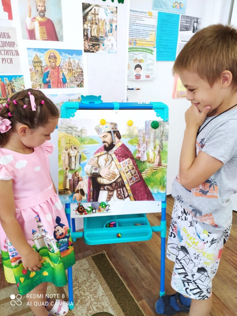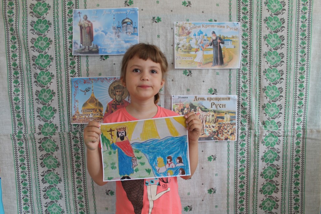 Воспитанники и педагоги детского сада №14 г. Колпашево приняли активное участие в творческом онлайн-марафоне Духово-просветительского центра Колпашевской епархии «День Крещения Руси». К празднику в нескольких группах детского сада были подготовлены тематические стенды, дети готовили видеопоздравления, рисовали рисунки. Предваряли творческие работы интересные рассказы педагогов об историческом событии и о святом равноапостольном князе Владимире. Напомним, прием работ в творческом онлайн-марафоне продолжается до 10 августа.