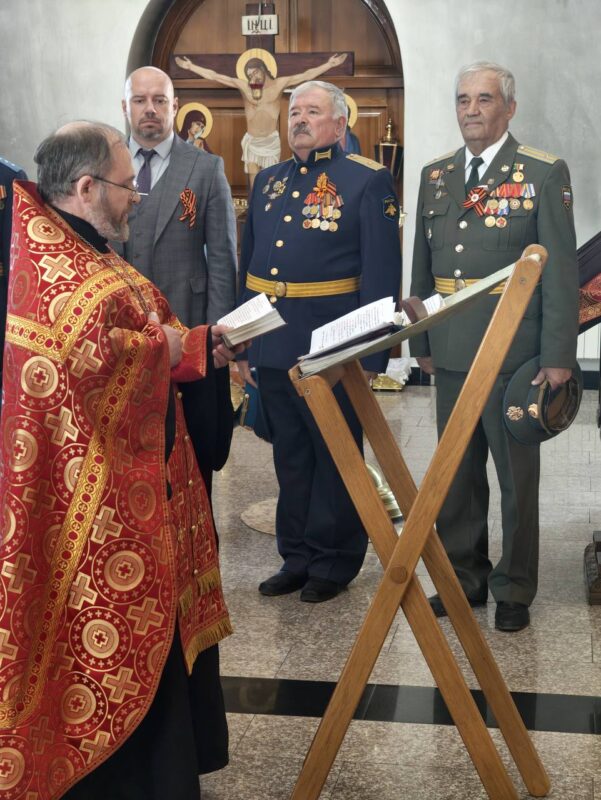 Размещено 15.05.2025 в 961 × 1280 в В день памяти великомученика Георгия Победоносца, святого покровителя военных, Вознесенский собор посетили ветераны Космических войск г. Колпашево