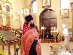 Богослужение возглавил настоятель прихода, благочинный Северного округа, секретарь Колпашевской епархии иерей Иоанн Усачёв, который обратился к будущим выпускникам с напутственным словом и окропил их святой водой.