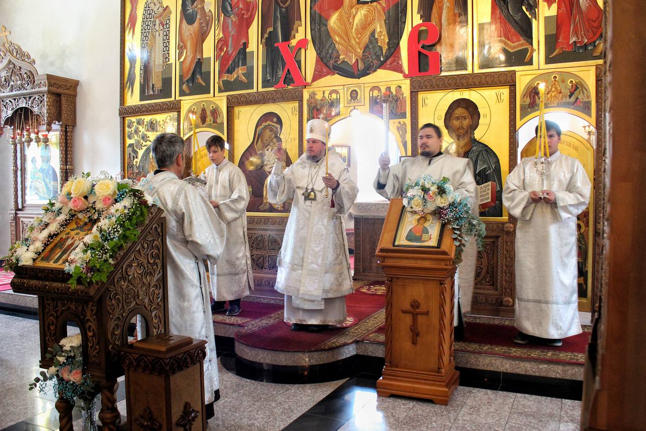 По окончании богослужения владыка Филарет обратился ко всем собравшимся с приветственным словом и поздравил всех с Престольным праздником кафедрального собора.