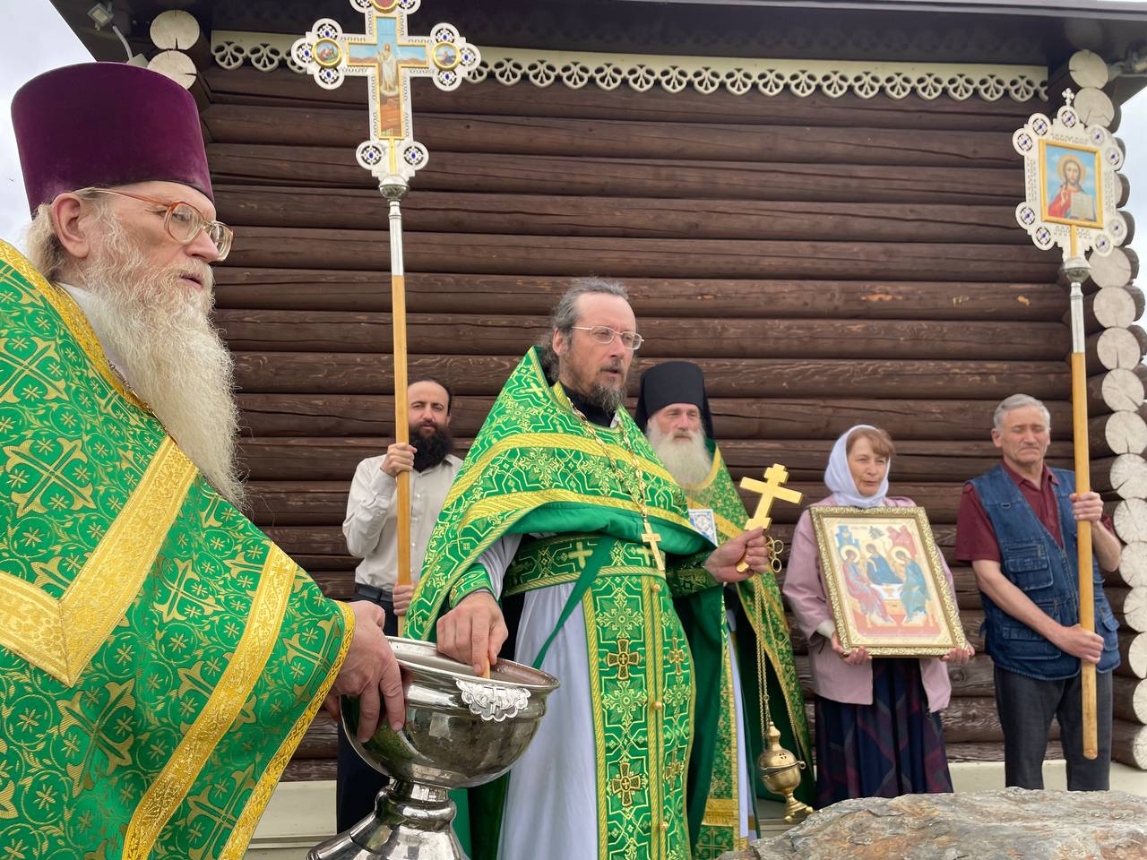 По окончании службы был совершен праздничный молебен с крестным ходом, после чего прозвучали приветствия и поздравления от духовенства. В завершении своего слова иерей Михаил Семергей в память о праздничной службе подарил приходу резную икону Святой Троицы, которая будет почитаться на приходе в качестве храмовой.
