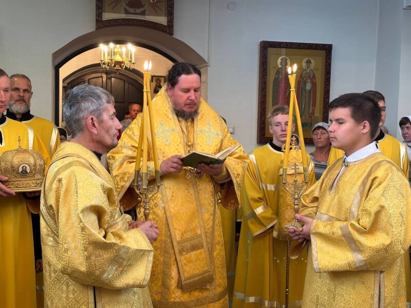 Размещено 02.07.2025 в 1280 × 960 в Епископ Филарет совершил воскресные богослужения в Преображенском храме с. Парабель и принял участие в торжествах по случаю 425-летия со дня основания села