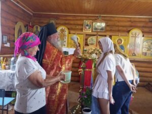 По окончании Литургии был совершен молебен святым Царственным страстотерпцам и окропление святой водой. После богослужения Ирина Вячеславовна Янченко провела для гостей экскурсию по Музею памяти раскулаченных с. Палочка.
