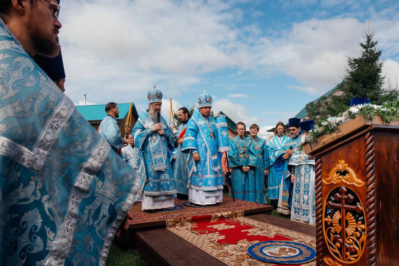 Там, на специально обустроенной площади с крытым алтарем, при большом стечении паломников и местных жителей, состоялась Божественная литургия.