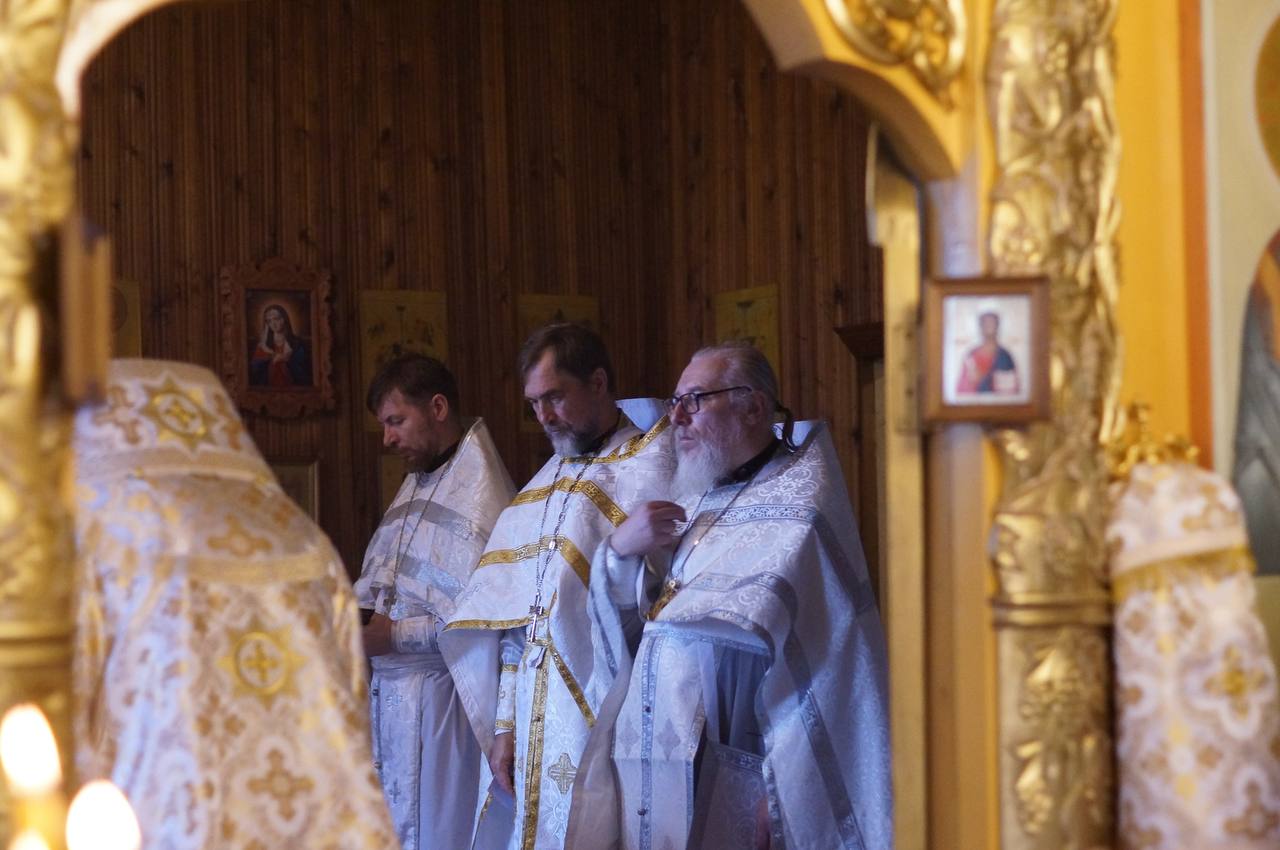 Его Преосвященству сослужили: благочинный Центрального округа протоиерей Александр Фрейдман, настоятель Георгиевского храма с. Кожевниково игумен Феодор (Прокопов), настоятель Всехсвятского храма с. Чажемто иерей Виктор Мансветов, настоятель храма Спаса Нерукотворного с. Каргасок иерей Александр Кулеш, штатный клирик того же храма иерей Роман Косенков и диакон Александр Цой.