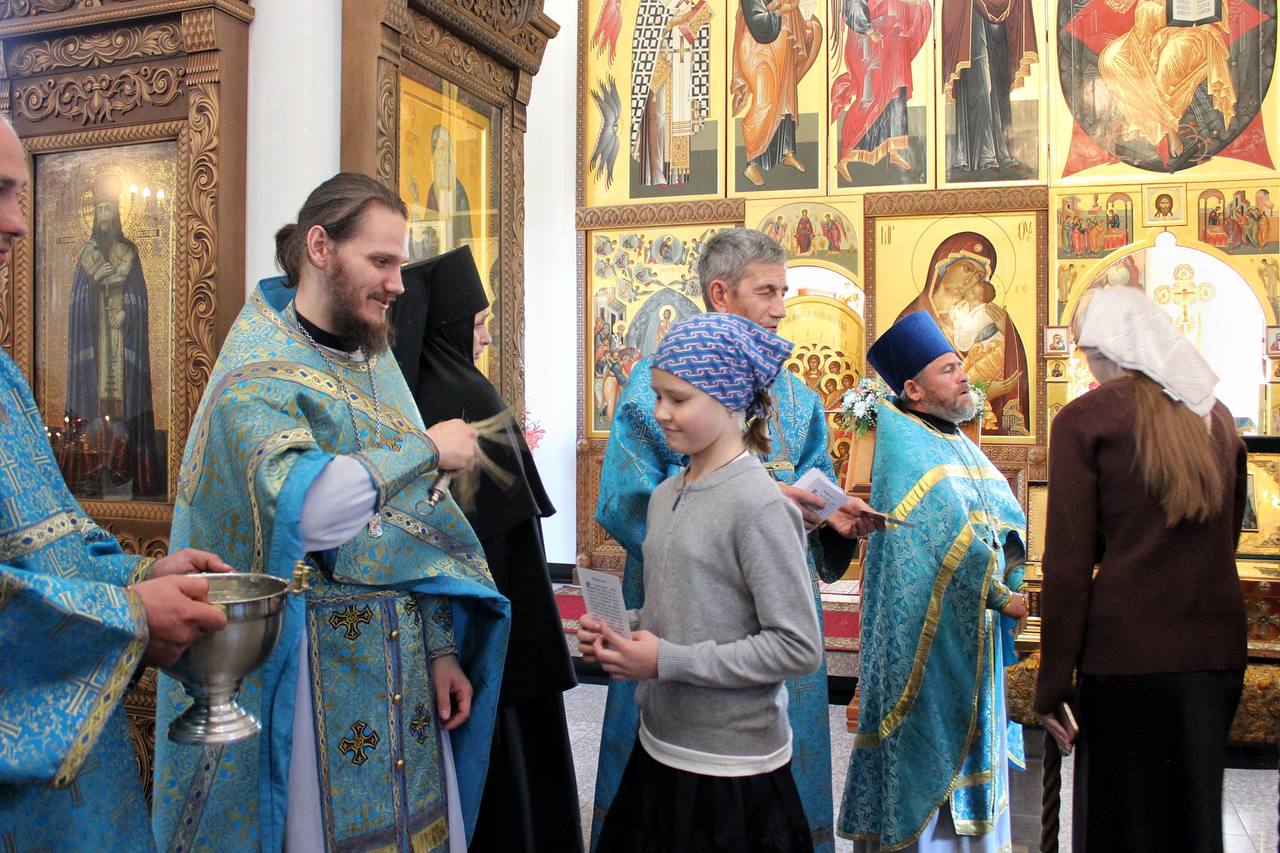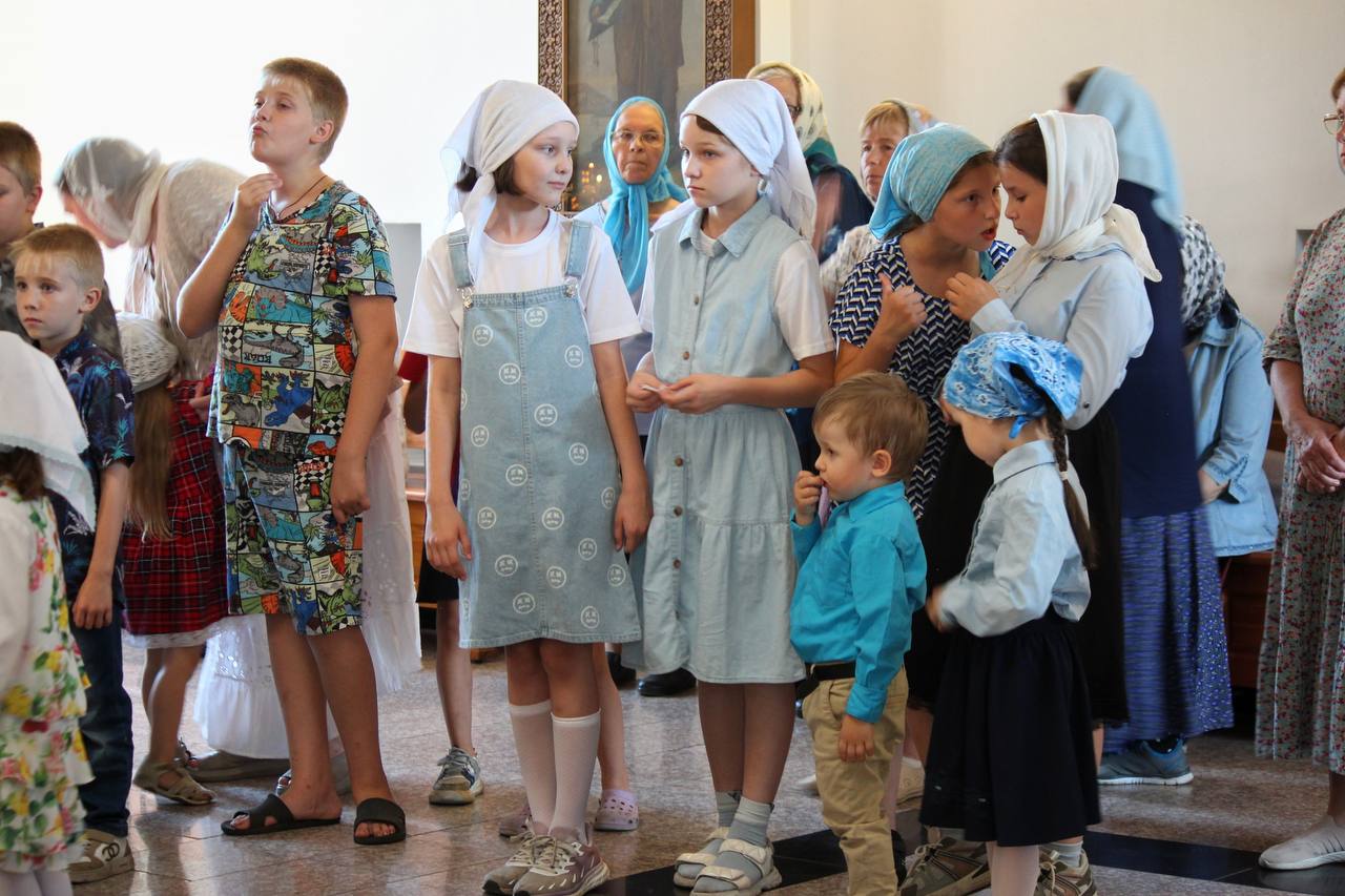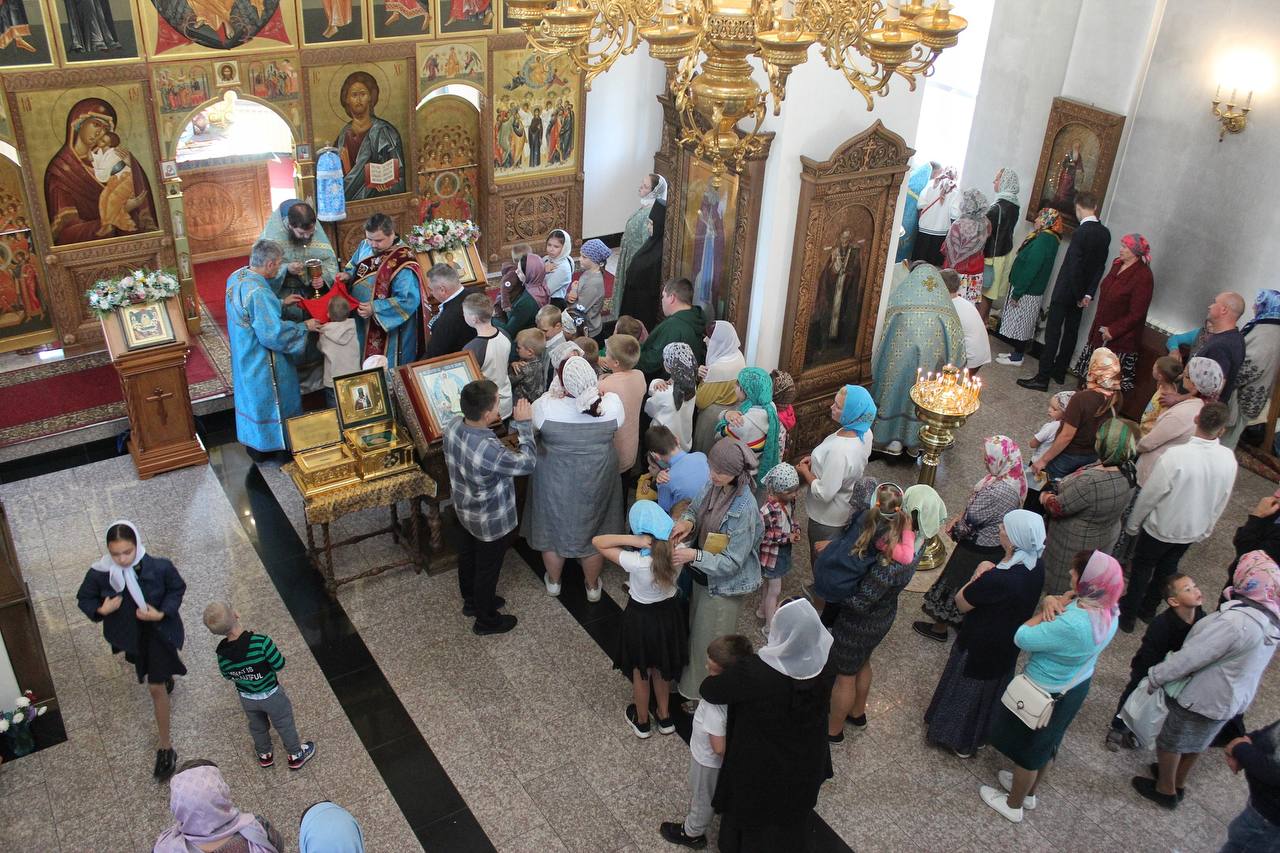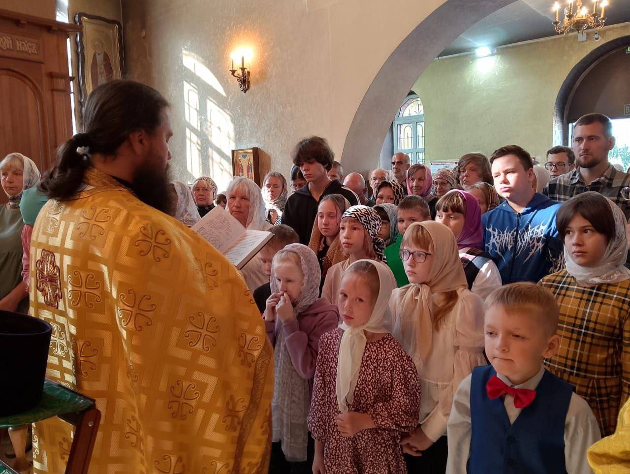 После завершения Божественной литургии перед ковчегами со святыми мощами святителя Иннокентия Московского, который в эти пребывал в Вознесенском соборе, и святителя Агафангела, предстоятеля собора Новомучеников земли Нарымской, для учащих, учащихся, родителей учеников был совершен молебен на начало нового учебного года.