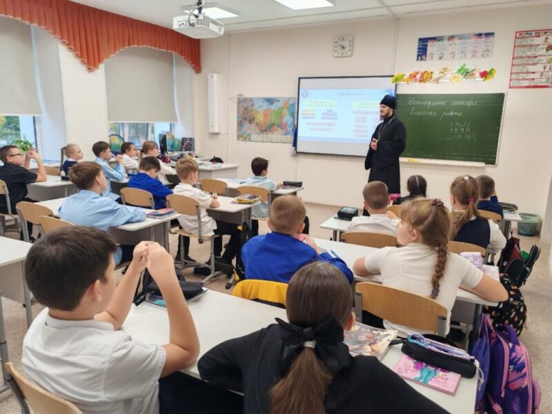 Размещено 01.10.2025 в 1024 × 768 в По приглашению руководства школы №2 . Колпашево клирик Вознесенского собора принял участие в вводных уроках по Основам православной культуры