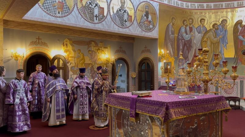 Размещено 01.10.2025 в 1280 × 715 в В праздник Воздвижения Честного и Животворящего Креста Господня епископ Филарет совершил Божественную литургию в Храме-Памятнике на Крови во имя Всех святых в земле Русской просиявших г. Екатеринбурга