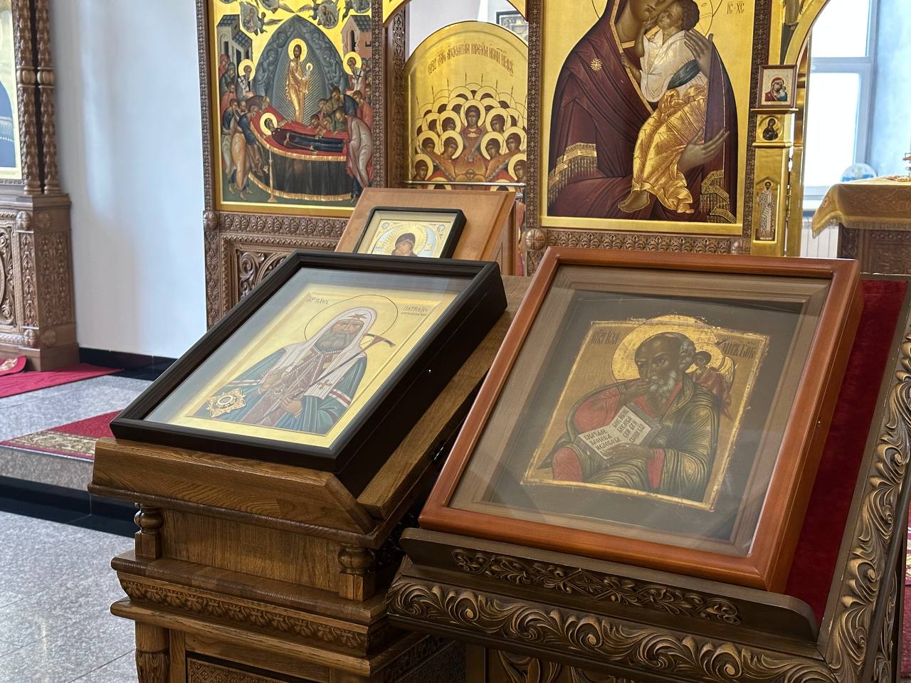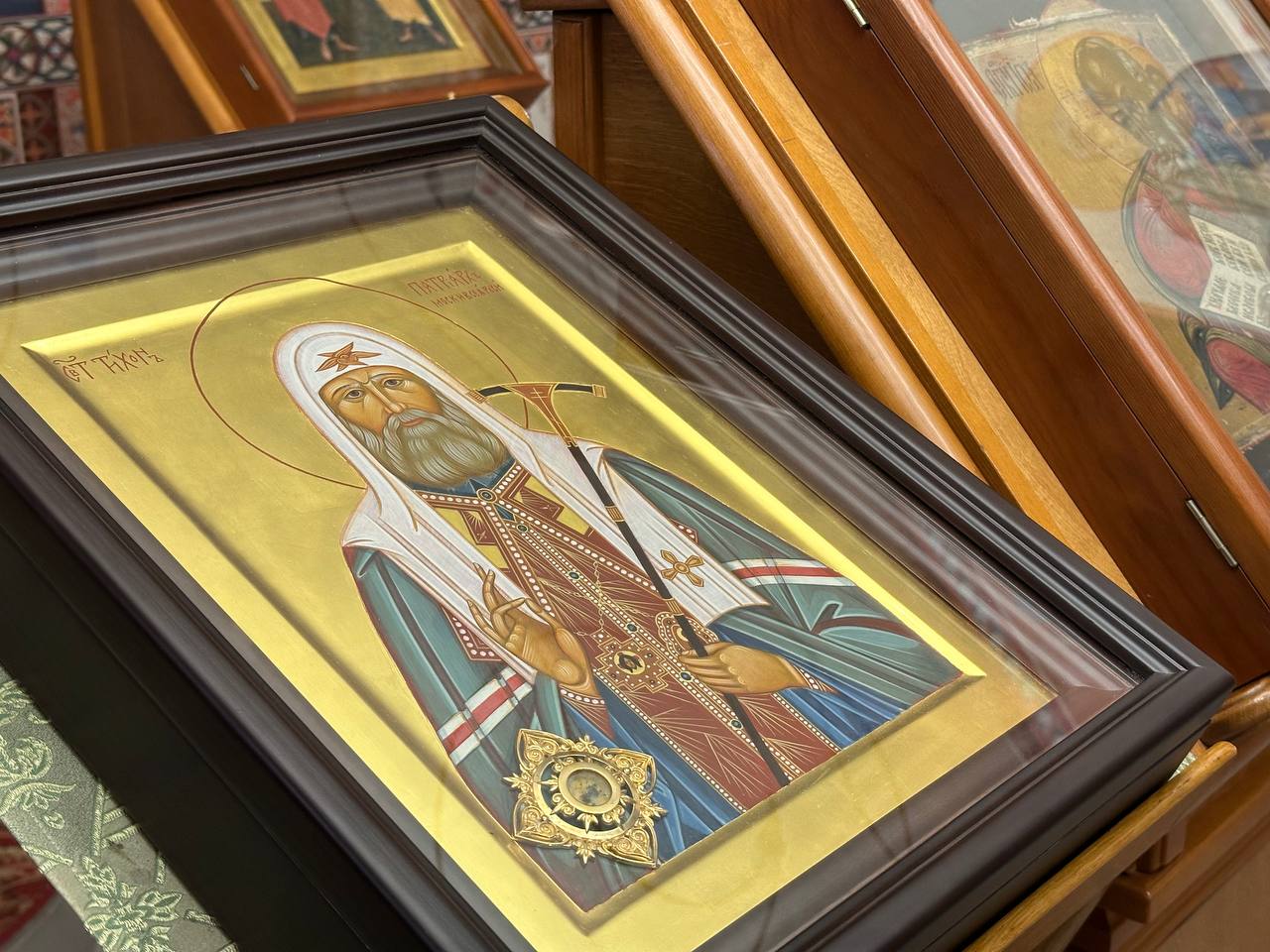 Накануне вечером было совершено Всенощное бдение, за которым во время полиелея епископом Филаретом была освящена новописанная икона святителя Тихона, патриарха Московского и всея Руси.