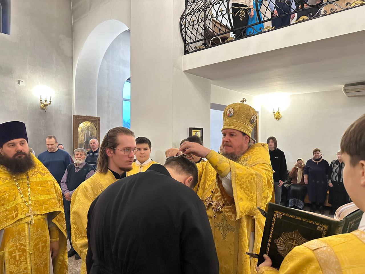 Перед началом Божественной литургии было совершено чинопоследование поставления во чтеца Захарчука Дмитрия, выпускника очного отделения Томской духовной семинарии 2022 года, пономаря Преображенского храма рп. Белый Яр Верхнекетского района.