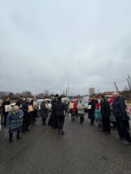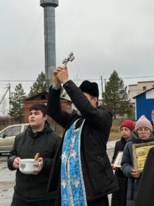 Молитвенное шествие завершилось в храме. На каждом месте остановки вместе с окроплением святой водой возносились молитвы Богу о жителях села, народе и Отечестве нашем, властях и воинстве.