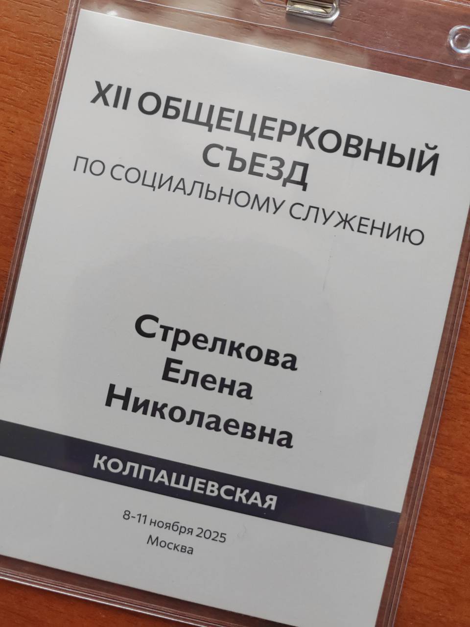 С 8 по 11 ноября по благословению Святейшего Патриарха Московского и всея Руси Кирилла в Москве проходил XII Общецерковный съезд по социальному служению. От Колпашевской епархии на форум были делегированы руководитель Отдела по церковной благотворительности и социальному служению иерей Георгий Полевщиков и помощник благочинного Южного округа по социальной работе, староста и руководитель социальной службы Успенского храма с. Бакчар Е.Н. Стрелкова.