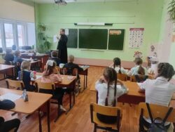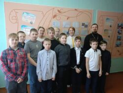 27 ноября иерей Вячеслав Перков посетил Катайгинскую школу, где поучаствовал в проведении урока по Основам Православной культуры для 3 и 4 класса (тема «Иконы») и урока литературы для учеников 6 класса (по произведению Пушкина «Дубровский»).