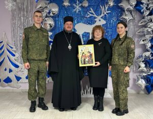 В завершение беседы владыка Филарет преподнес в дар Колпашевскому кадетскому корпусу иконографический образ святителя Митрофана Воронежского, благословляющего императора Петра I.