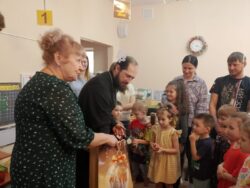 Дети и их родители познакомились со священником Александром, это стало началом их дружбы, которая продлится минимум до окончания детского сада. Отец Александр рассказал детям и их родителям о святителе Николае, поздравил с праздником и подарил каждому ребенку ангелочка на елочку с вкусными конфетами.