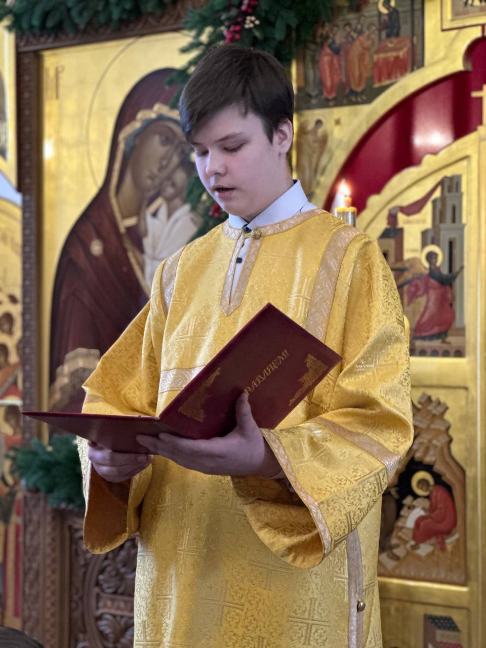По запричастном стихе проповедь произнес Долматов Захар, воспитанник приходской воскресной школы.
