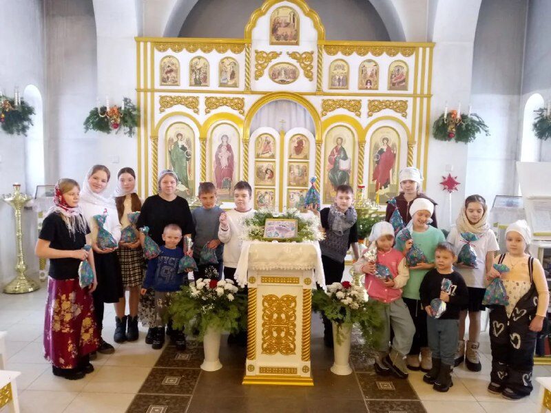Размещено 21.01.2026 в 800 × 600 в В храме Архангеле Михаила села Кривошеино прошёл яркий Рождественский праздник для детей, в котором приняли участие воспитанники воскресной школы, ученики казачьего класса Кривошеинской школы, а также жители села
