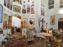 Богослужения возглавил секретарь Колпашевской епархии иерей Иоанн Усачев, которому сослужил настоятель Сергиевского храма иеромонах Онисифор (Миллер) и ключарь Вознесенского собора г. Колпашево диакон Александр Цой.