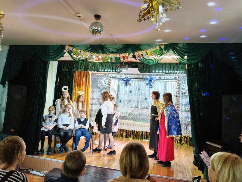 Размещено 21.01.2026 в 800 × 602 в В Чажемтовском Доме культуры состоялся показ рождественского спектакля «Сказка ложь, да в ней намёк», который был подготовлен школьниками и учениками приходской воскресной школы храма Всех святых