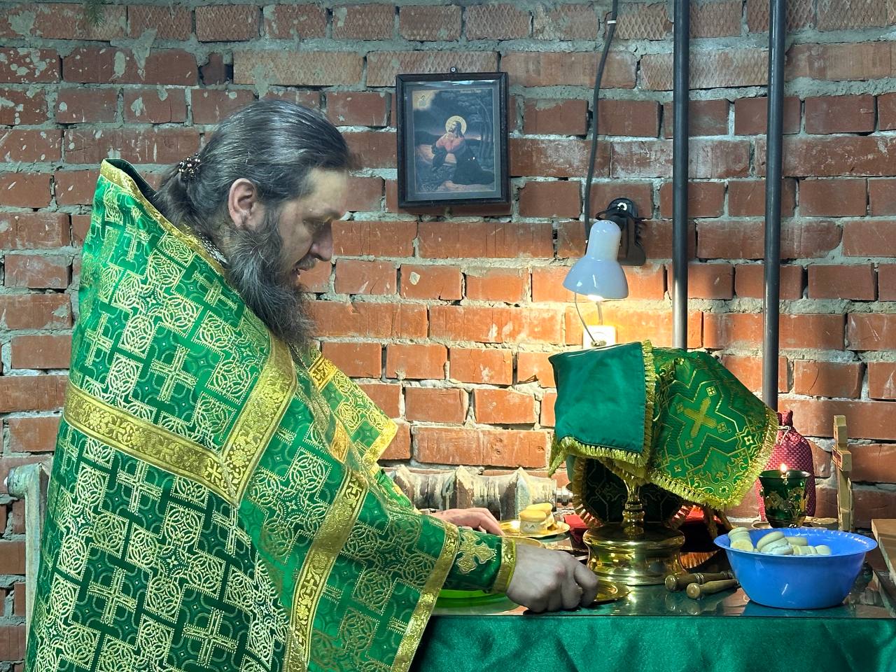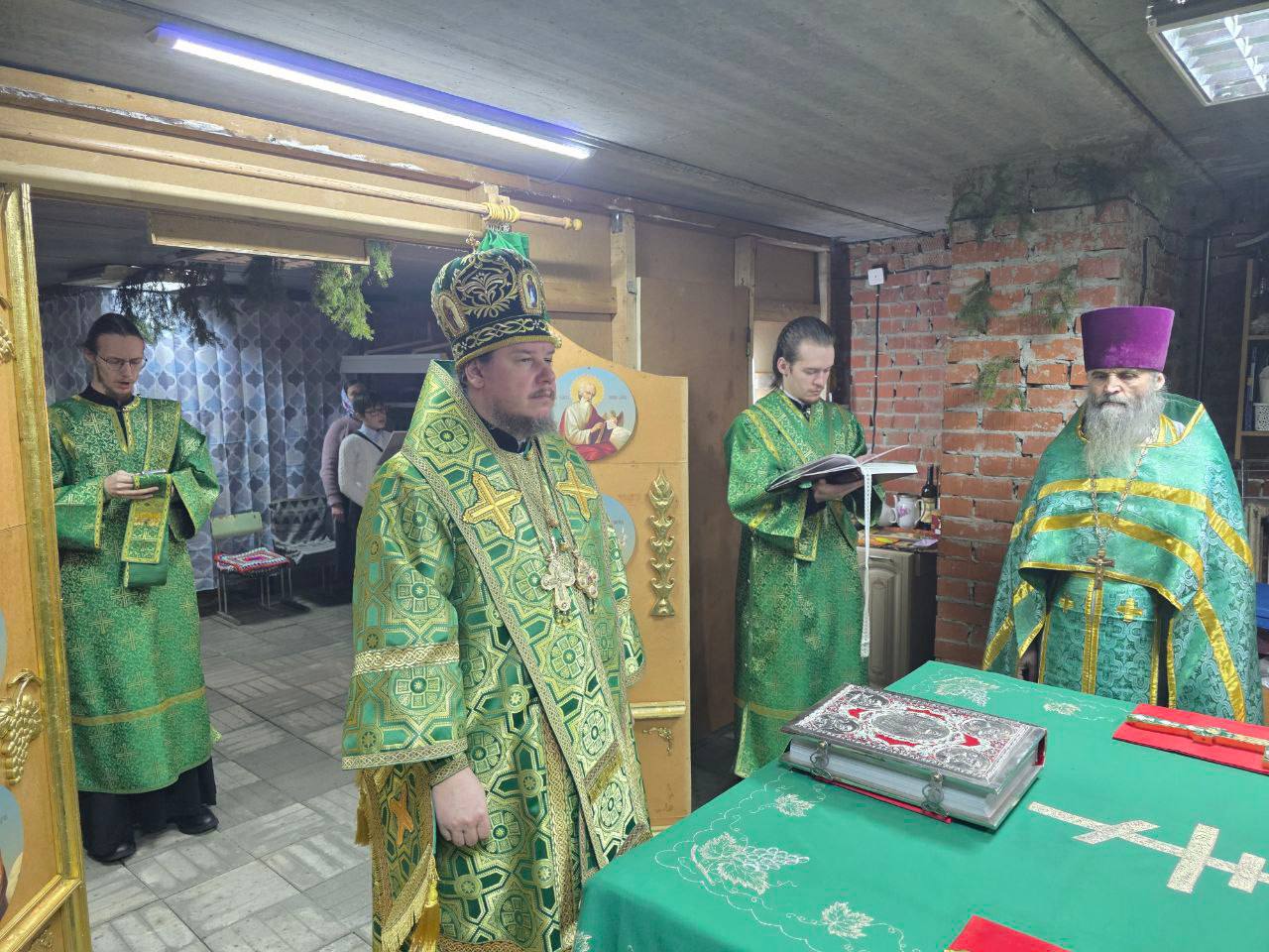 Его Преосвященству сослужили: благочинный Южного округа иерей Михаил Семергей, настоятель Успенского храма с. Нарга иерей Иоанн Дулачик, настоятель храма прп. Серафима Саровского с. Сарафановка иерей Иоанн Вылегжанин и клирик Вознесенского собора г. Колпашево иеродиакон Макарий (Башкловкин).