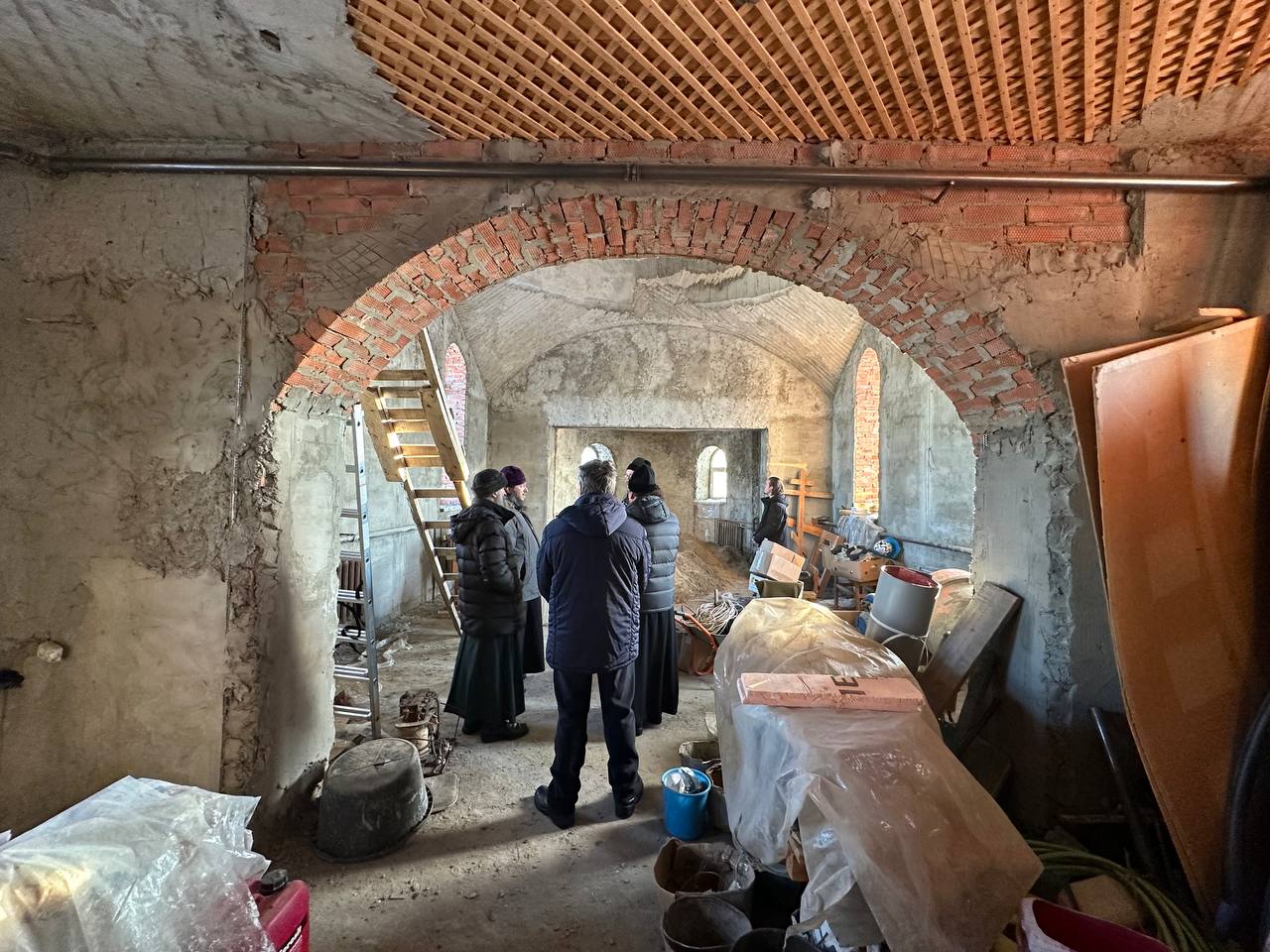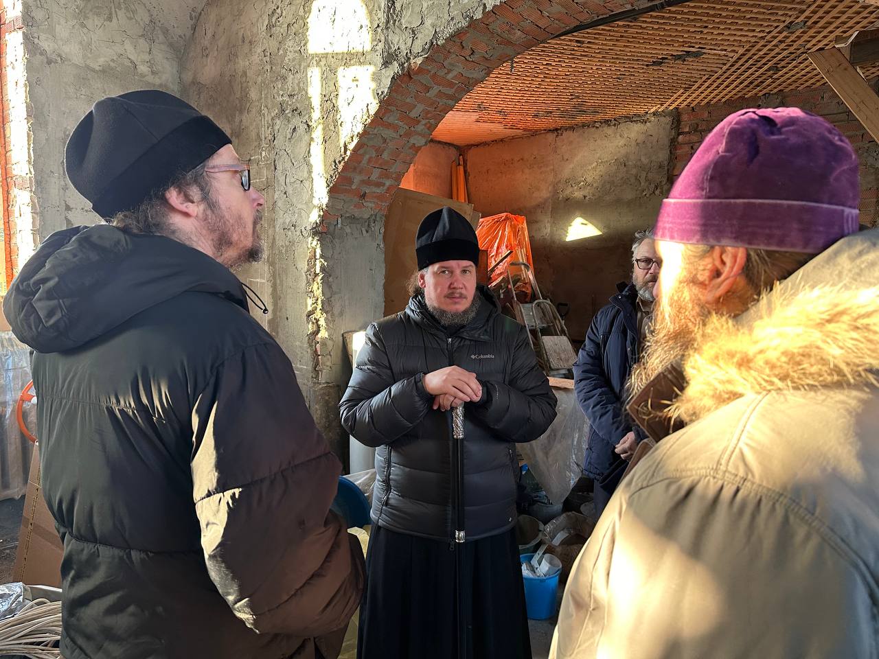 После богослужения владыка осмотрел ход строительных работ в основной части храма.