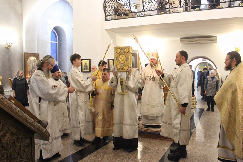 Божественную литургию Василия Великого возглавил епископ Колпашевский и Стрежевской Филарет в сослужении клириков Вознесенского собора. Диаконский чин возглавил иеродиакон Макарий (Башкловкин). Богослужебные песнопения исполнил хор собора под управлением регента Светланы Лисицы.