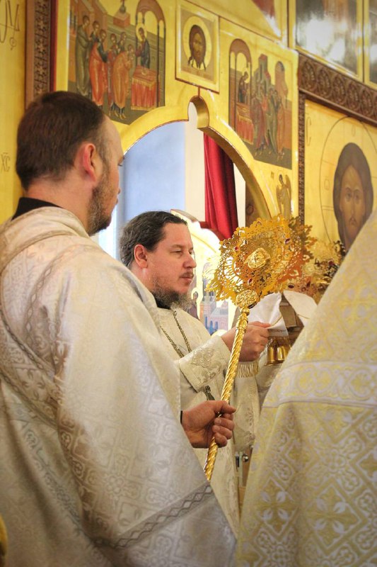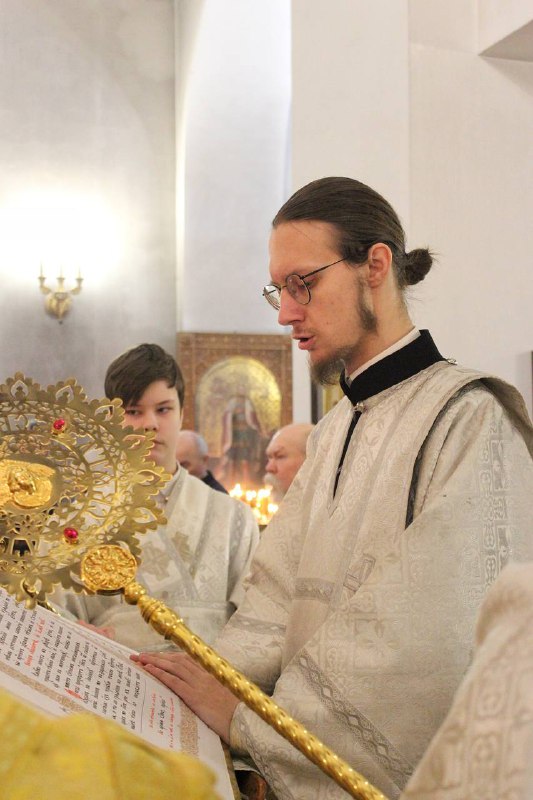 За Богослужением была совершена диаконская хиротония клирика Никольского кафедрального собора г. Стрежевого иподиакона Василия Бурхавцова.