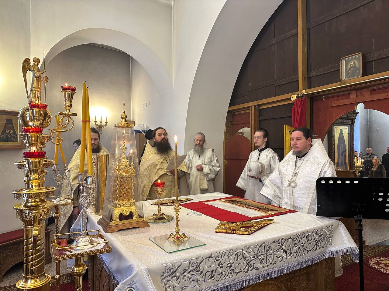 Накануне вечером было совершено вечернее богослужение с Парастасом.