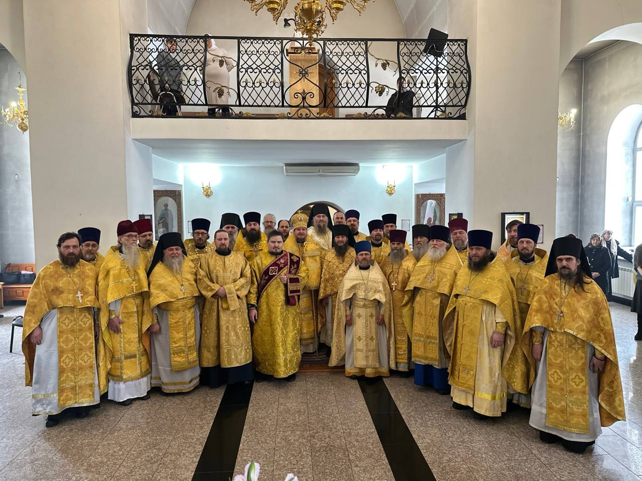 Размещено 24.02.2026 в 1280 × 960 в В Вознесенском кафедральном соборе прошло соборное богослужение, приуроченное к 100-летию блаженного преставления святителя Макария (Невского), а затем в Колпашевском епархиальном управлении состоялось годовое Епархиальное собрание духовенства Колпашевской епархии