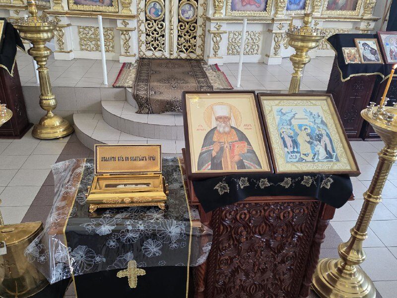 Размещено 15.03.2026 в 800 × 600 в В Неделю 1-ю Великого поста, Торжества Православия, в день 100-летия преставления святителя Макария (Невского), митрополита Московского и Коломенского, Томского чудотворца, ковчег с десницей этого святого был доставлен в храм Преображения Господня с. Молчаново