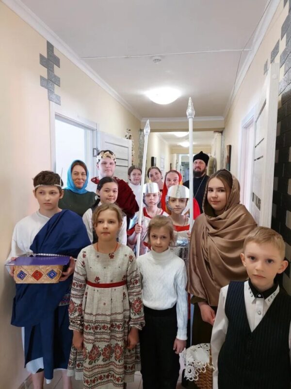 Размещено 25.04.2026 в 768 × 1024 в Учащиеся воскресной школы храма святителя Николая г. Стрежевого во главе с ключарем иереем Александром Хохловым посетили находящихся на излечении в пансионате «Добромир», где поздравили пациентов и сотрудников учреждения с праздников Святой Пасхи